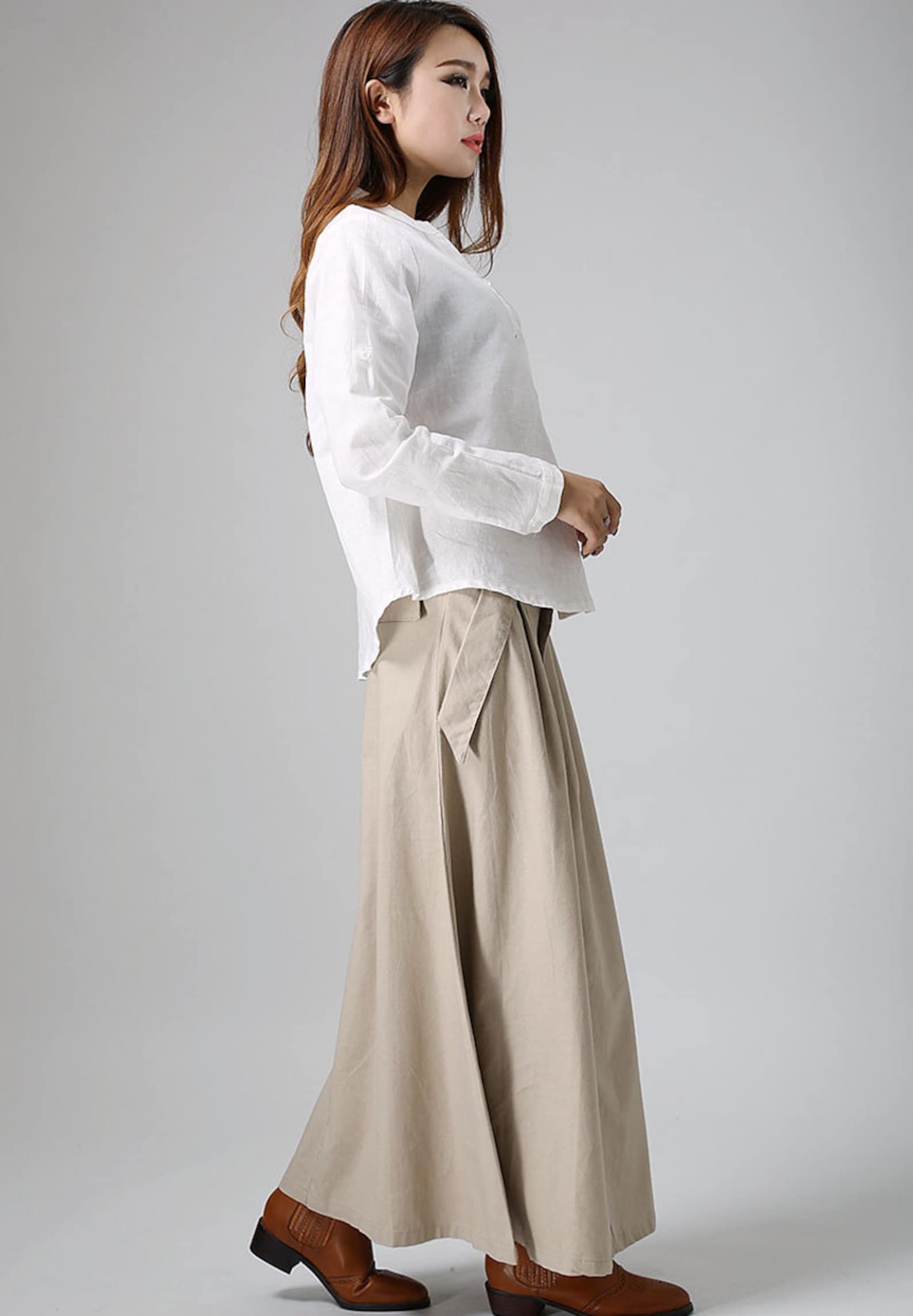 Be the first to review “Beige High-Waisted Pleated Maxi A-Line Skirt”