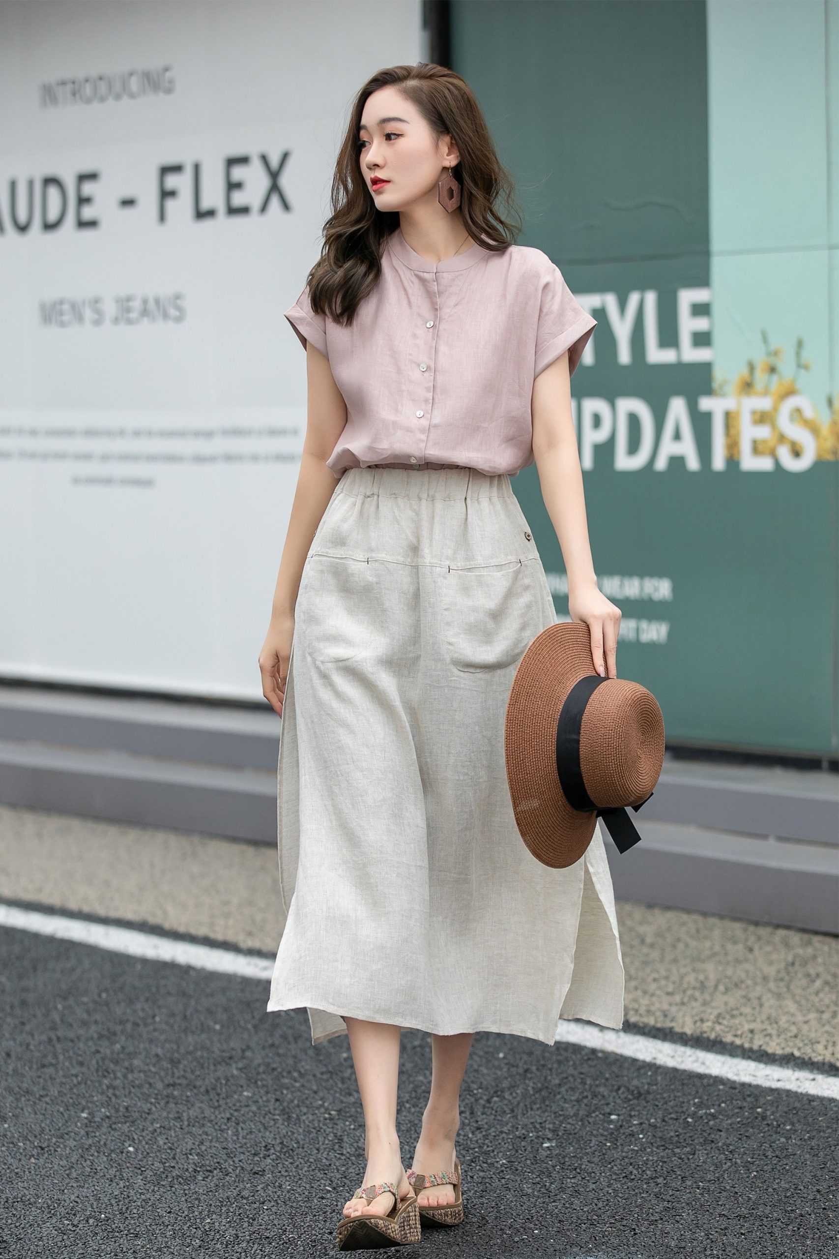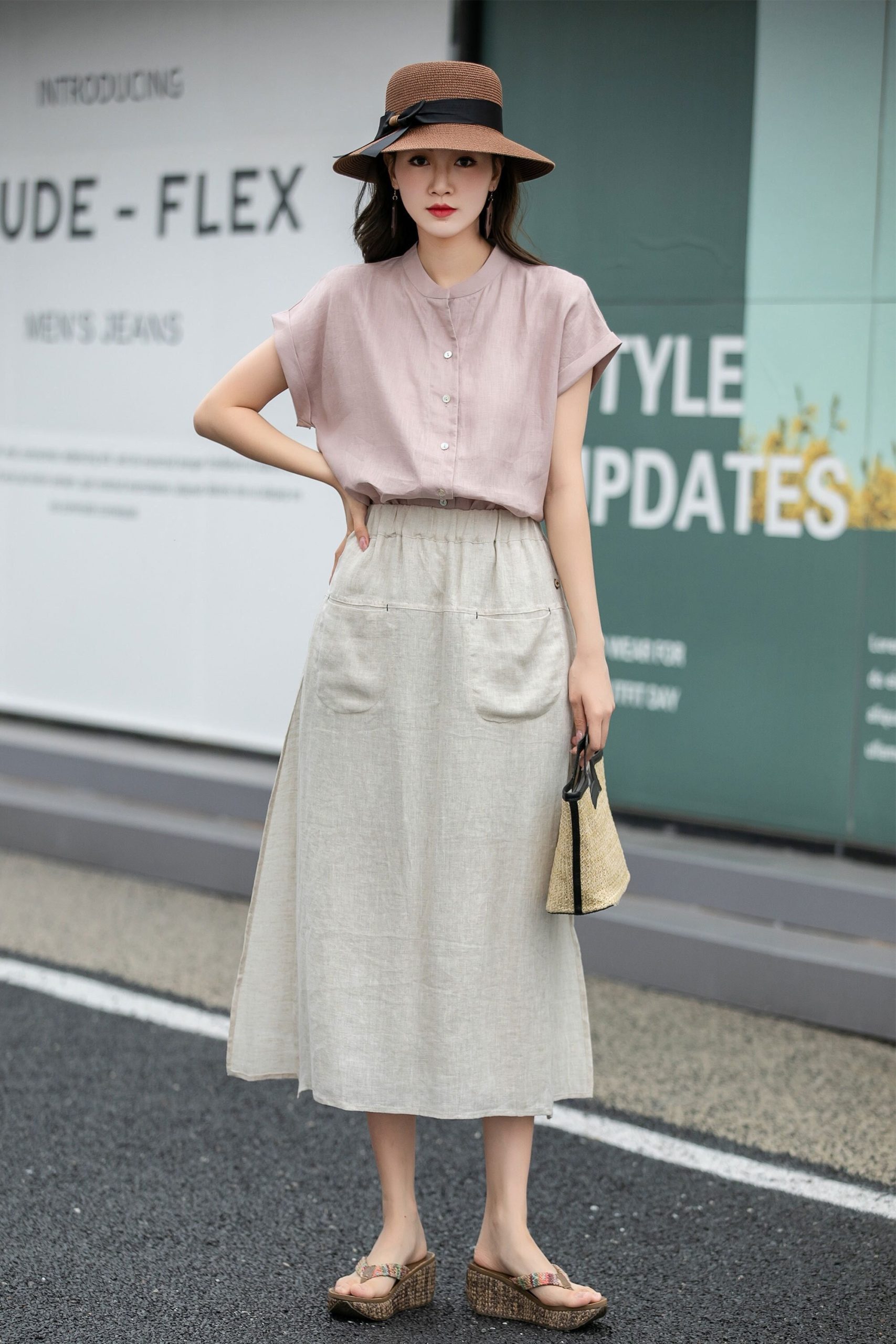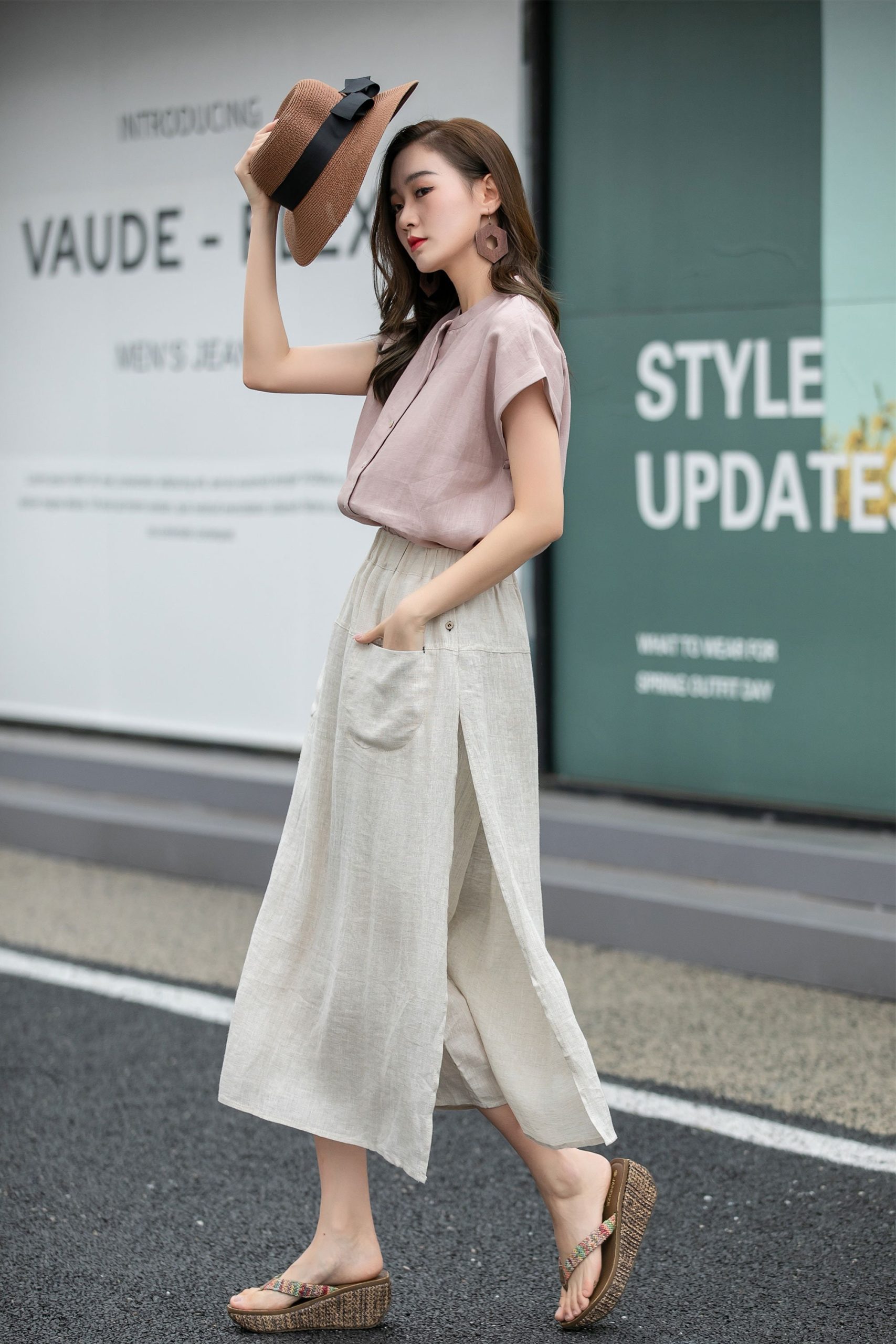 Natural Linen Blend Fabric: Lightweight, breathable, and comfortable, perfect for warm-weather wear.