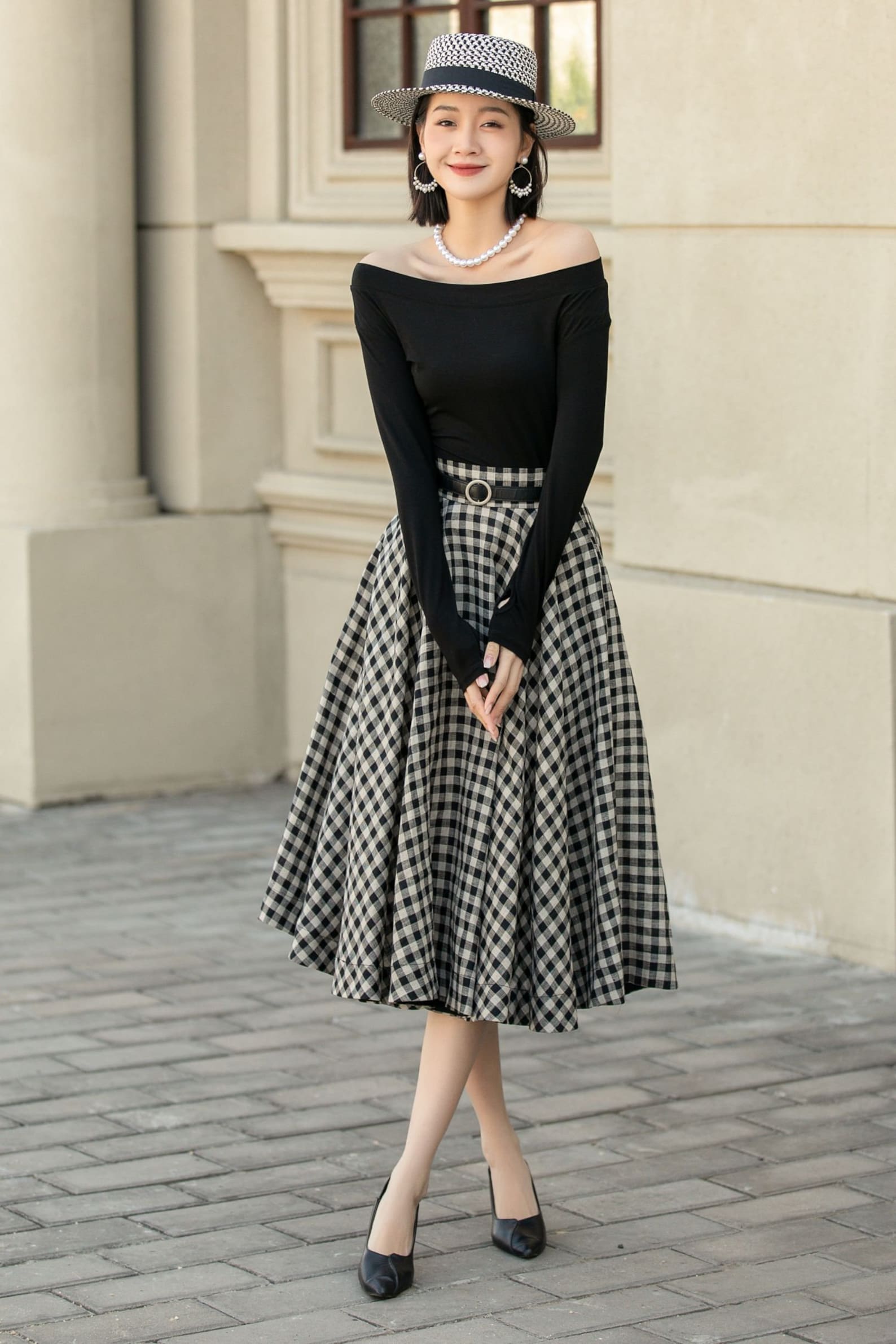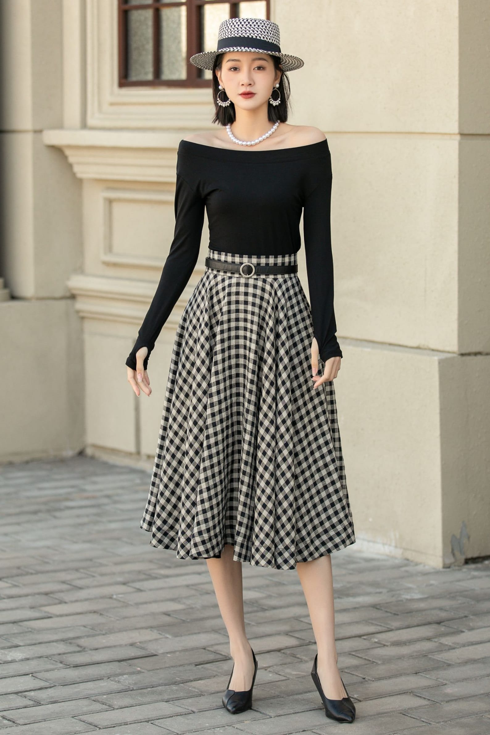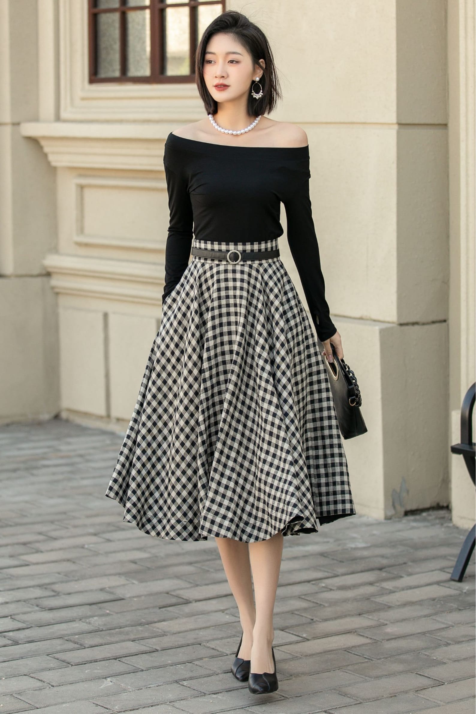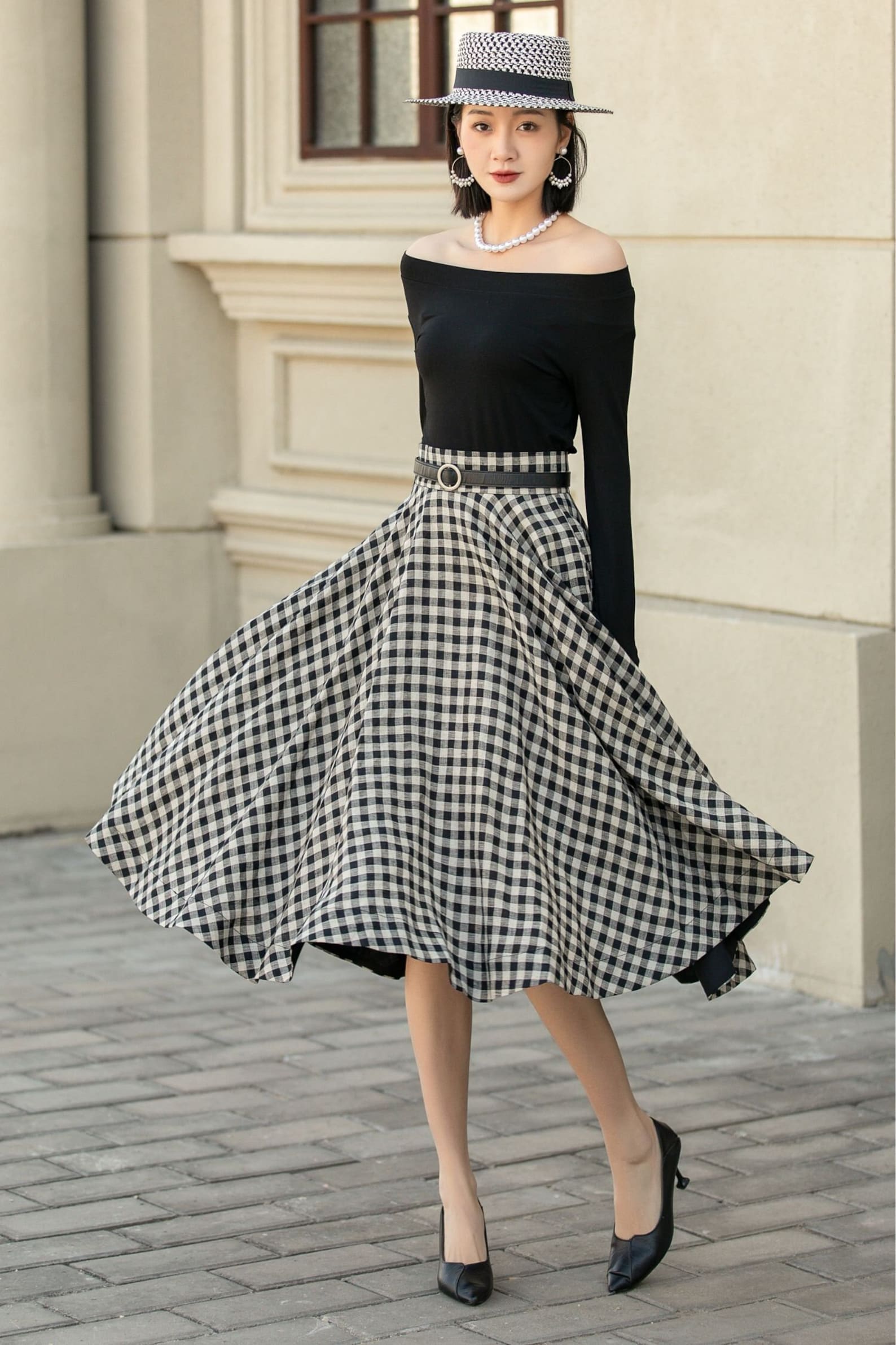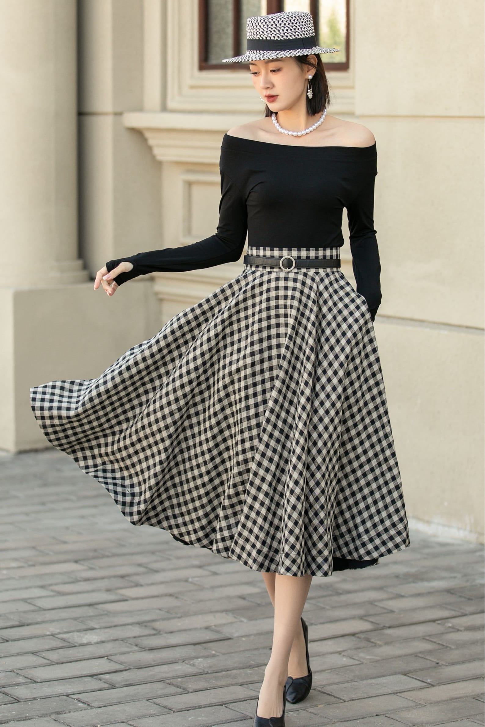 Chic Plaid Pattern: Black and white gingham plaid design that blends vintage charm with modern elegance, versatile for casual and formal wear.