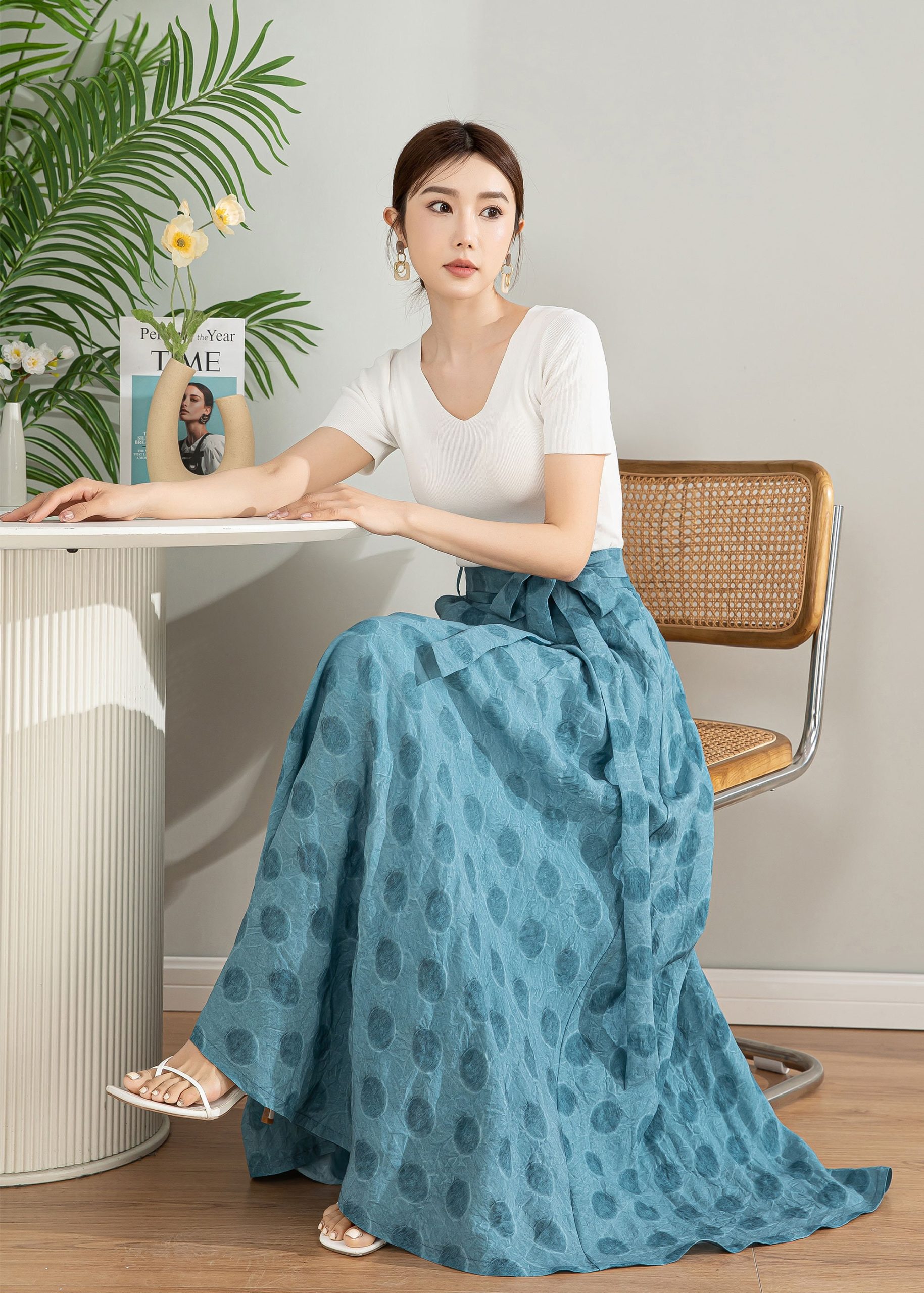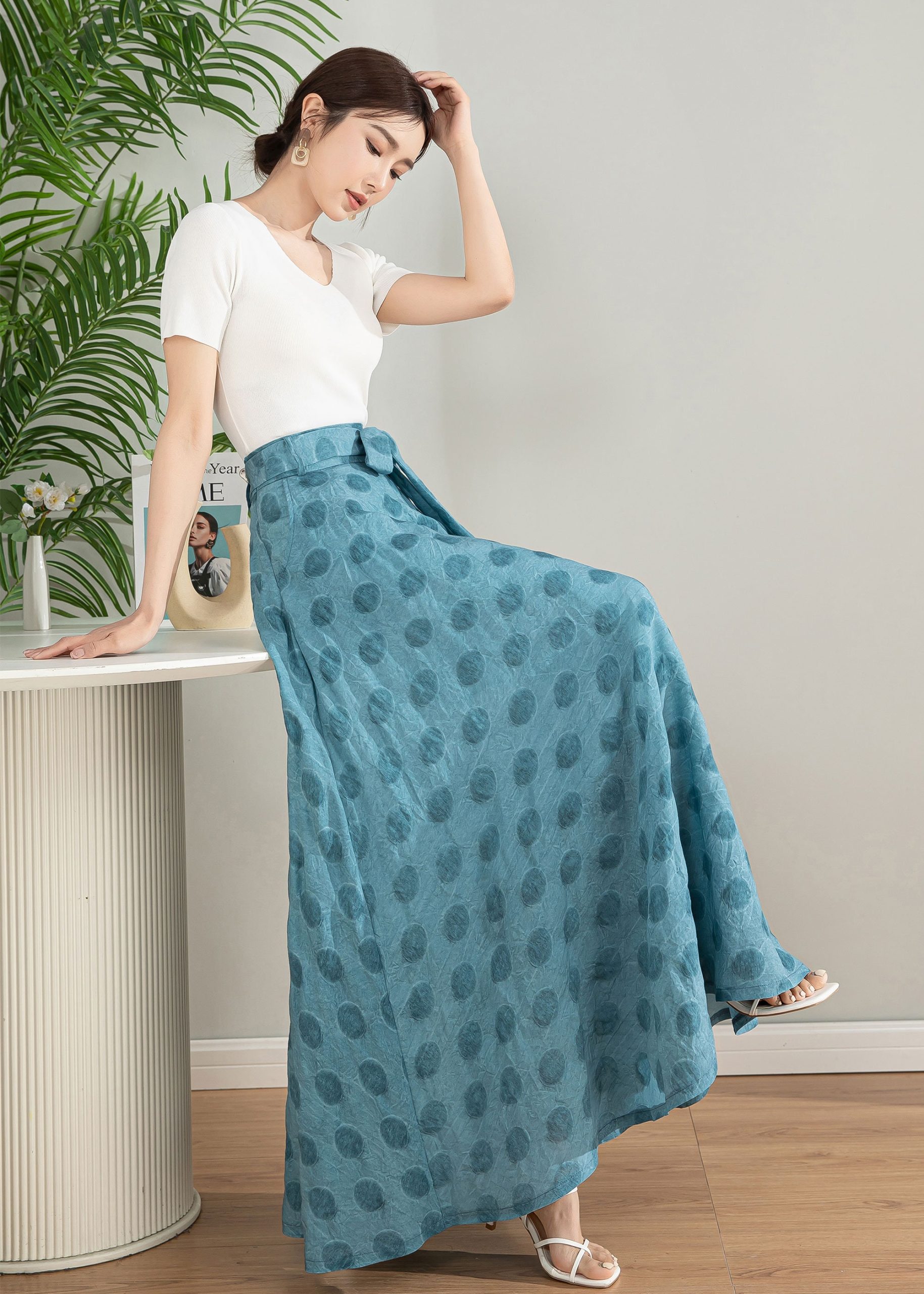 Flattering A-Line Silhouette: High-waisted maxi skirt with a graceful flare that flows beautifully with every step.
