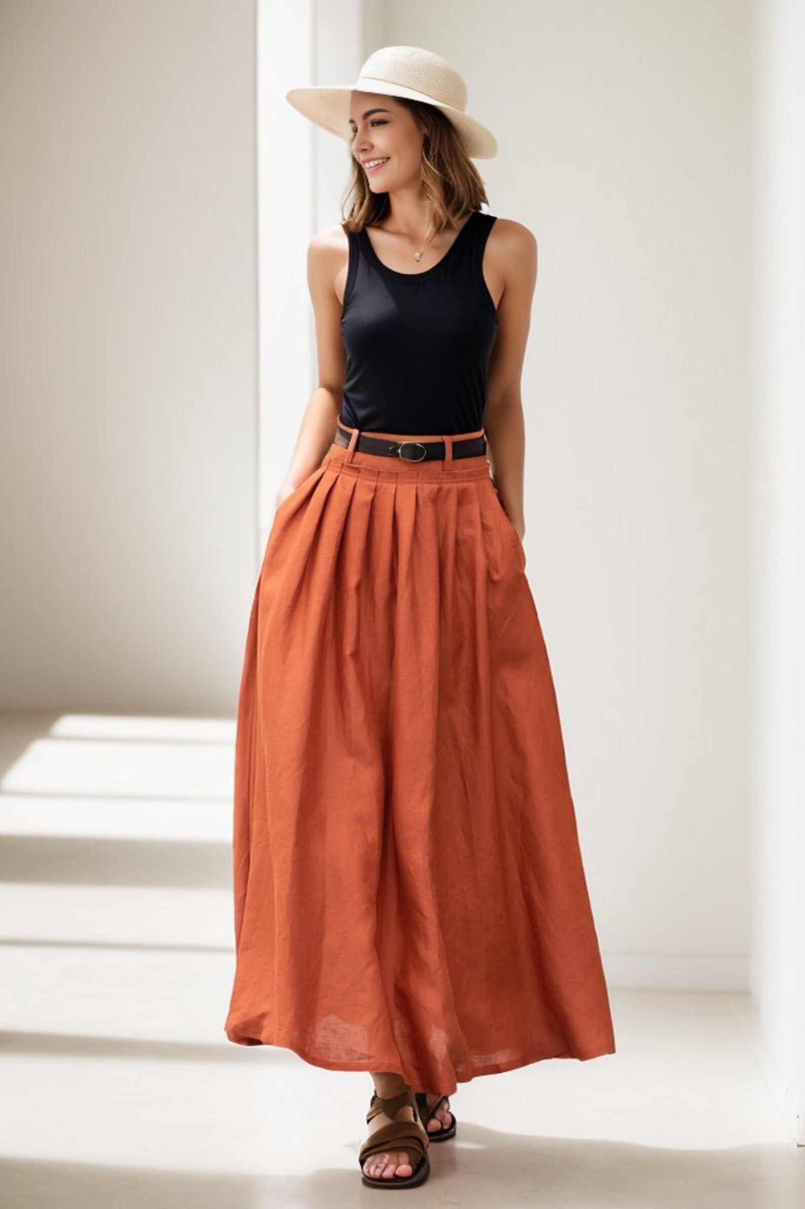 Flowy Pleated Hem: Wide flared hem with delicate pleats adds depth and volume, creating a dynamic, flowing effect with every step.